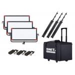 3 прибора PL-E90D со шторками в кейсе с колесиками, 3 штатива освещения, 3 блока сетевого питания