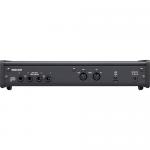 От младших моделей серии US-4x4HR отличается только количеством входов/выходов. Для подключения имеются 4 XLR входа, 4 TRS входа, 2 выхода для наушников с единым регулятором, MIDI In/Out, 4 TRS выхода, USB-С порт. Питание интерфейса осуществляется от внешнего адаптера. Со звуковой картой производитель поставляет программы Steinberg Cubase LE, Cubasis LE3 и IK Multimedia Sample Tank 4 SE.