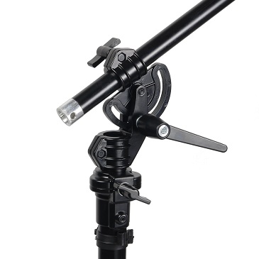 На конце перекладины закреплен съемный шпигот 5/8" с винтовой резьбой 1/4'' и 3/8'', на который устанавливаются осветители постоянного или импульсного света и другое стандартное студийное оборудование, например микрофоны.