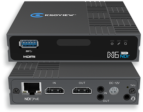 Kiloview N5/N6 - это двунаправленный NDI-конвертер, который поддерживает 3G-SDI/HDMI вход (кодировщик) и петлевой выход (декодер). Благодаря поддержке как NDI high bandwidth, так и NDI HX2 / 3, N5 / N6 способен обрабатывать все источники NDI с любой камеры, программного обеспечения или устройства.