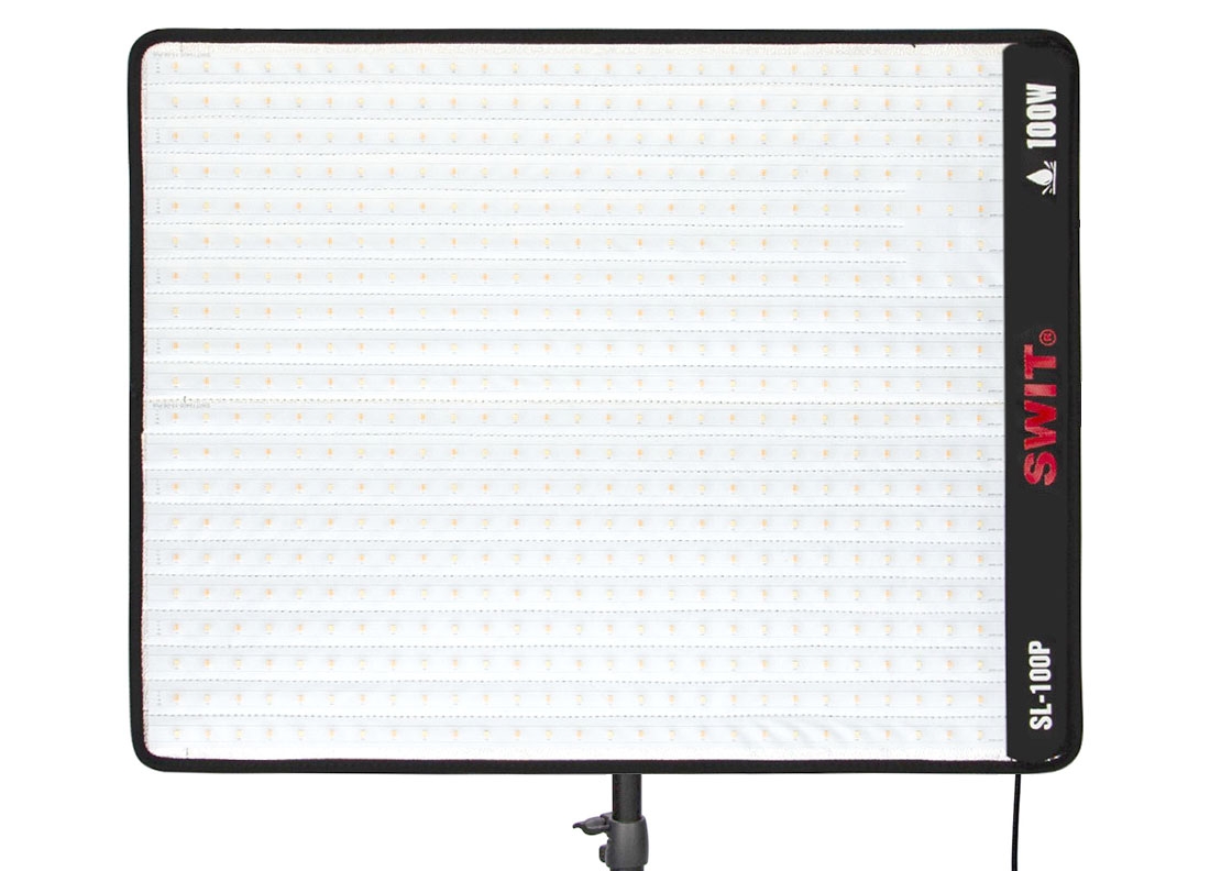 SWIT SL-100P универсальный гибкий влагозащищенный (IP54) осветительный прибор с поверхностным размещением светодиодов на тканевой основе. Может быть изогнут в любую сторону для формирования угла излучения от 10° до 360°, что позволяет организовать источник освещения в любом ограниченном пространстве. Чередование LED элементов 2700K° и 6500K° позволяет плавно изменять цветовую температуру во всем рабочем диапазоне. Может использоваться совместно с водонепроницаемыми V-lock аккумуляторами PB-R160S+ или PB-R290S+ в дождь под любым углом наклона без дополнительной защиты.