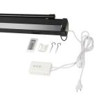 Пульт управления имеет интуитивно понятный интерфейс управления при помощи всего 3 кнопок. Нажатие средней кнопки заставит фон фиксироваться в любом положении по длине.
