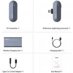 Миниатюрный приемник не имеет встроенного аккумулятора, для активации его достаточно включить в разъем USB Type-C вашего устройства, например смартфона или ноутбука. Приемник имеет два внешних разъема для подключения (через адаптер входящий в комплект) проводных наушников (мониторинг записи) и внешнего источника питания USB Type-C для подзарядки вашего устройства во время записи.