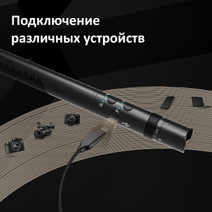 С помощью кабелей входящих в комплект, микрофон можно использовать с различными устройствами: смартфонами, планшетами, ноутбуками, фотоаппаратами, компьютерами, видеокамерами, микшерами, рекордерами и другим оборудованием.