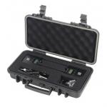Жесткий пластиковый кейс с поролоновыми вставками предохраняет радиосистему от повреждений во время транспортировки и хранения. Размер кейса 370х202х85 мм, вес комплекта в кейсе 1.6 кг.