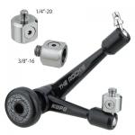 Кронштейн KUPO KCP-111 11" ROCK'S ARM - универсальный и прецизионно изготовленный шарнирный кронштейн длиной 28см (11"), выдерживающий нагрузку до 8 кг и предназначенный для установки мониторов, рекордеров, светодиодных осветительных приборов и микрофонов на операторских ригах. Фрикционное колесо надежно фиксирует положение кронштейна и позволяет контролировать натяжение шарниров, что делает манипулятор удобным и комфортным в эксплуатации. Головки кронштейна вращаются на 360 градусов, а паз во втулке позволяет наклонить головку на 90 градусов, обеспечивая множество положений установки. На одном конце расположена головка с наружной резьбой 1/4"-20, а на другом - головка с наружной резьбой 3/8"-16. Головки изготовлены из нержавеющей стали и служат для крепления различных принадлежностей. Уникальный конический механизм зацепления обеспечивает плавную регулировку шарнира даже при натяжении. Головки с наружной резьбой являются съемными и крепятся на шаровом основании с помощью шестигранного ключа, такое решение может быть полезным для отсоединения и присоединения некоторых устройств.