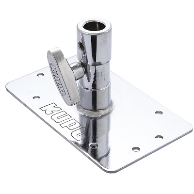 Кронштейн KUPO KS-047 5/8"(16MM) BABY RECEIVER PLATE с приваренным приемным гнездом Baby 5/8" (16мм) с внешним диаметром Junior 1-1/8" (28мм) предназначен для крепления осветительных приборов или другого оборудования на плоских поверхностях, таких как стены, потолки, ящики и т.д. Кронштейн можно установить непосредственно на стойку со штифтом Baby или, сняв зажимную рукоятку, на опору с приемным гнездом Junior. Кронштейн можно использовать для установки монитора, динамика или осветительного прибора. На крепежной пластине размером 9х15см находится 8 отверстий для гвоздей или саморезов.