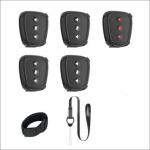 В комплекте 5 устройств, 5 креплений на руку, 5 наушников с микрофоном, кейс для транспортировки и хранения