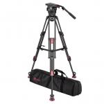 AGILE 12 (EZ LOAD) 100-миллиметровая жидкостная головка с выдвижной панорамной ручкой + двухсекционный карбоновый штатив TR-100CF2 с откидными тормозными рычагами, ручкой для переноски, прочной распоркой среднего уровня CONTENDER и резиновыми ножками с глубоким протектором + мягкий чехол