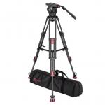 AGILE 15 (EZ LOAD) 100-миллиметровая жидкостная головка с выдвижной панорамной ручкой + двухступенчатый алюминиевый штатив TR-100AL2 с откидными тормозными рычагами, ручкой для переноски, прочной распоркой среднего уровня CONTENDER и резиновыми ножками с глубоким протектором + мягкий чехол
