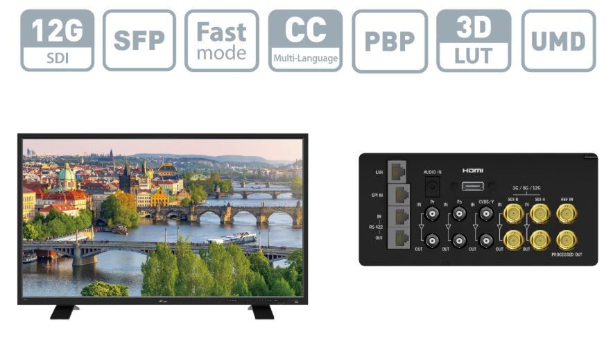 Монитор S-42P-N оснащён новой материнской платой, обеспечивающей повышенную стабильность и быструю обработку данных. Этот монитор поддерживает различные видеоформаты, включая 12G-SDI, HDMI и SFP. Также предусмотрены сетевое управление по протоколу Ember+ и HDR с HDR-EOTF PQ, HLG и SLog3.