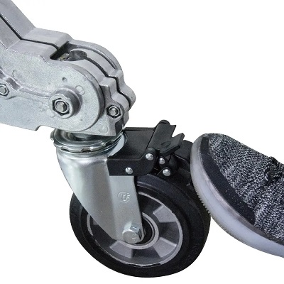 KUPO 744M JUMBO STAND – мощная и надежная стойка на колесах с ручным приводом подъема колонны, рассчитанная на безопасную работу с экстремально тяжелыми нагрузками. Стойка изготовлена из хромированной стали и соответствует высоким требованиям индустрии по прочности и безопасности. Стойка выдерживает нагрузку до 70 кг и поднимает оборудование на высоту до 4,7 м, обеспечивая надежную опору даже для самых массивных приборов. Прямой привод с редукторным механизмом и система автоматической блокировки обеспечивают значительно более высокую эффективность и надежность по сравнению с традиционными блоками и тросами. Каждая секция колонны оснащена увеличенной Т-образной рукояткой, обеспечивающей максимальный крутящий момент при фиксации, а две дополнительные рукоятки внизу упрощают складывание массивной конструкции. Верхняя часть стойки оснащена гнездом Junior 1-1/8" (28 мм) с проушинами для растяжек, что гарантирует устойчивость даже в сложных погодных условиях. Входящие в комплект колеса Ø152 мм с тормозами KC-160C позволяют безопасно и легко перемещать стойку, дополнительно приобретается комплект пневматических колес KC-254C для более удобного использования на улице или на площадке.