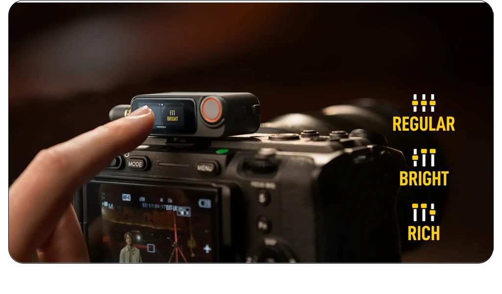 Система обеспечивает премиальное качество звука благодаря поддержке записи в формате 32-бит float с частотой дискретизации 48 кГц. Встроенная память объемом 32 ГБ позволяет вести непрерывную запись до 57 часов в формате 24-бит или до 43 часов в 32-бит float. Функция Dual-File одновременно сохраняет оригинальную дорожку и копию с пониженным уровнем громкости для защиты от клиппинга. Три предустановки тона голоса и двухуровневая система шумоподавления обеспечивают оптимальное звучание в различных условиях