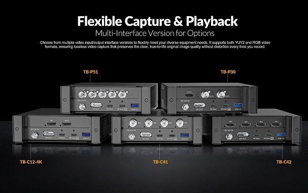 TB-P51 - высокопроизводительная док-станция, оснащенная 1 SDI-входом, 1 SDI-выходом и 3 переключаемыми каналами ввода-вывода SDI, поддерживающими передачу данных без потерь в форматах YUY2 и RGB. Она обеспечивает максимальную скорость передачи данных в 40 Гбит/с благодаря сверхскоростному интерфейсу и поддерживает PCIe 3.0 x4 (полоса пропускания