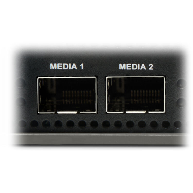 IP25-R оснащен двумя слотами SFP28, совместимыми с модулями SFP 10 GigE и 25 GigE для высокоскоростной передачи видео по протоколу SMPTE ST 2110. Устройство поддерживает hitless switching ST 2022-7, обеспечивая бесперебойное резервирование сети для критически важных IP-процессов. (модули SFP в комплект не входят)