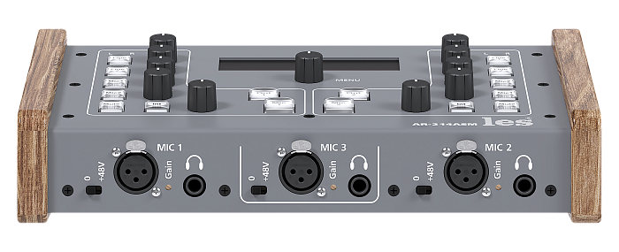 К пульту подключается 2 гарнитуры или отдельно 2 микрофона и 2 пары наушников. Микрофоны могут быть динамическими и электретными, есть возможность включения/выключения фантомного питания +48В.