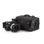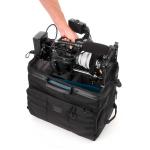 Сумка с увеличенной высотой до 30 см для размещения профессиональных видеокамер и кинокамер Sony, Canon, RED, Blackmagic с установленным обвесом и другим дополнительным оборудованием (монитор, микрофон и т.п.) длиной до 46 см. Камера находится в сумке полностью собранная, надежно зафиксированная и готовая к работе.