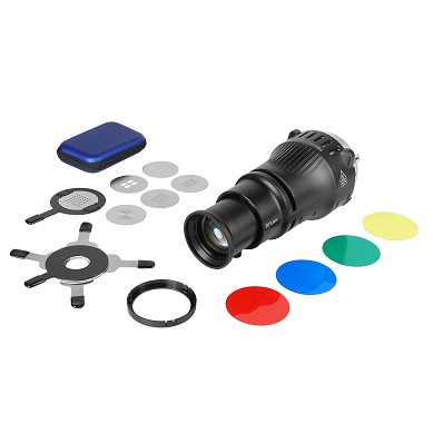 Оптическая насадка FEA-OST7LED BW создает акцентированное и управляемое освещение от источника света с увеличением яркости проекции почти в 2 раза. Устанавливается на светодиодный осветитель с байонетом Bowens мощностью до 500 Вт. Комплект включает шторки, цветные фильтры и набор масок Gobo для создания сложных световых эффектов.