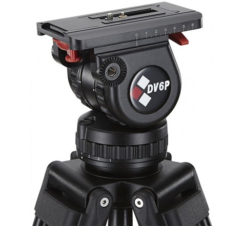 Жидкостная головка DV6P с полусферой 75 мм разработана для цифровых зеркальных камер и лёгких DV и HDV видеокамер. Оснащена 4 регулируемыми положениями сопротивления панорамирования и наклона, включая нулевое положение. Восьмипозиционная система противовеса позволяет точно настраивать положение камеры. Также жидкостная головка оснащена пузырьковым уровнем, площадкой для камеры Mini Euro, которая обеспечивает быструю установку и имеет диапазон смещения 6 сантиметров для оптимального балансирования съёмочного оборудования.