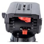 Жидкостная головка Camgear V20S с полусферой 100 мм поддерживает нагрузку до 25 кг. Эта профессиональная головка оснащена 10-ступенчатой системой противовеса, включающей основную 8-ступенчатую регулировку и 2 дополнительных рычага регулировки для более точного баланса камеры. Также предусмотрено 8-ступенчатое управление сопротивлением панорамирования и наклона. Площадка для камеры Mini Euro обеспечивает быструю установку и имеет диапазон смещения 70 миллиметров для оптимального балансирования съёмочного оборудования. Дополнительные функции включают пузырьковый уровень для удобной регулировки, розеточные крепления для установки рукоятки панорамирования как слева, так и справа, а также саму рукоятку панорамирования PB-1. Штативная головка обеспечивает панорамирование на 360° и наклон от -75° до +90° для получения различных ракурсов. Пластина крепления камеры WP-3 оснащена винтами для монтажа 1/4" и 3/8".