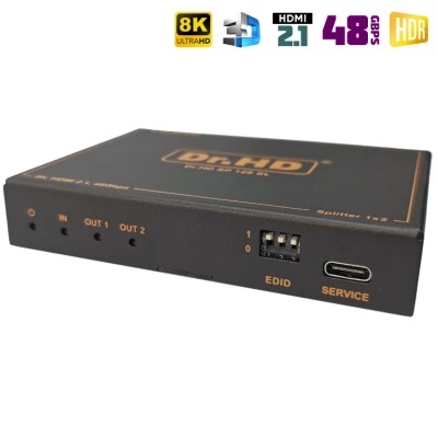 Dr.HD SP 128 SL – шикарный HDMI разветвитель на 2 с отличным набором продвинутых характеристик. Он отлично подойдет как для бытового, так и для профессионального применения. Благодаря поддержки HDMI 2.1 и видеоразрешений 8K, этот HDMI разветвитель будет актуальна еще долгие годы. Он обязательно понравится геймерам, ведь здесь есть поддерживает самых популярных функций, таких как Переменная частота обновления (VRR), Автоматический режим с низкой задержкой (ALLM) и Быстрая передача кадров (QFT).