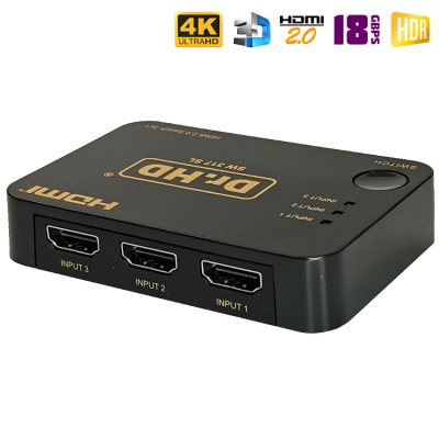 - Переключатель сигнала с 3 HDMI источников на 1 HDMI потребитель.
