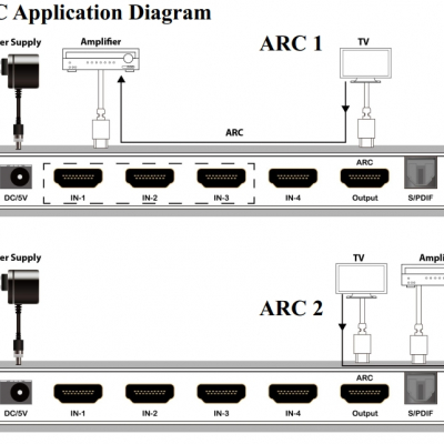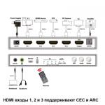 - Петлевой ARC (можно вывести звук с ТВ для подключения саундбара) HDMI In1,In2,In3