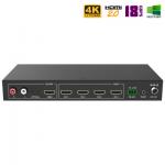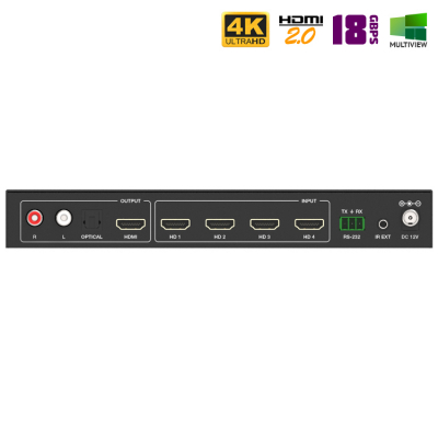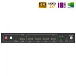 С HDMI переключателем Dr.HD SW 417 SM пользователь может управлять каждым входом и создавать комбинации из четырех входов на одном дисплее. Имеется 8 режимов отображения, в пределах диапазона режимов пользователи могут свободно переключать источники сигнала. Переключатель поддерживает полный диапазон разрешений вплоть до 4K @60Hz, а для подключения внешних систем распределения звука есть опция деэмбеддинга. Управление устройством осуществляется с помощью кнопок на передней панели, ИК-пульта, навигации по экранному меню, фирменного ПО, а также команд RS-232.