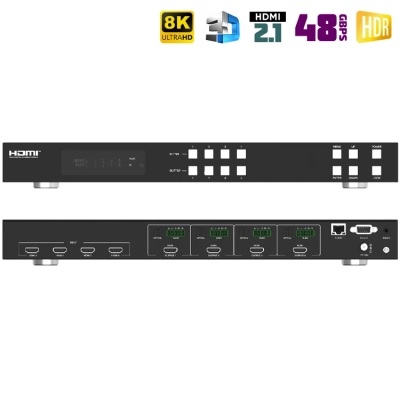 - Поддержка понижающего масштабирования 8K->4K или 8K/4K->1080p для каждого выходного порта