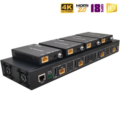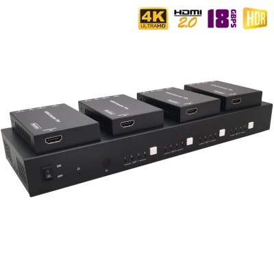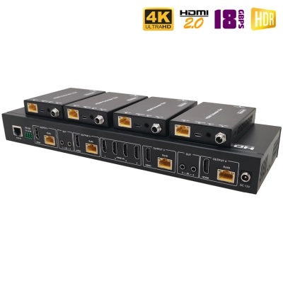 - Выходные порты: 4x HDMI, 4x CAT [RJ45], 4x IR OUT [3.5mm Stereo jack]