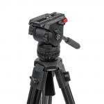Головка закрепляется на штативной шаровой базе Ø75 мм, что позволяет быстро установить камеру и настроить ее горизонтальное положение для съемки. Жесткий штатив с прочными алюминиевыми сдвоенными ногами и телескопической средней растяжкой обеспечивает оператору необходимую мобильность и уверенность в качестве отснятого материала. Комплект штатива дополняет сумка для переноски.