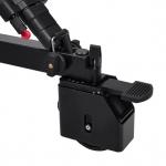 Интегрированный насос позволяет быстро накачивать колонну без внешних компрессоров. Ход 36 см обеспечивает плавный вертикальный трекинг в пределах рабочего диапазона высот 74,5–150 см. Пневматическая система гарантирует стабильное положение камеры при любой нагрузке до 60 кг. Регулировка давления через манометр выполняется оперативно, что критично в динамичных прямых эфирах.