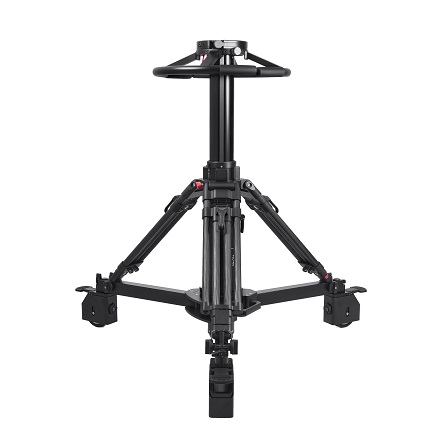 Пьедестал выполнен в одноступенчатой конфигурации с интегрированной пневматической системой. Быстросъёмный механизм фиксации головки позволяет устанавливать и снимать камеру за секунды, сохраняя полную жёсткость конструкции. Долли с шириной по колёсам 94 см обеспечивает устойчивость при трекинге, а транспортная ширина всего 24 см (узкая — 21 см) делает перемещение по коридорам и дверным проёмам максимально удобным.