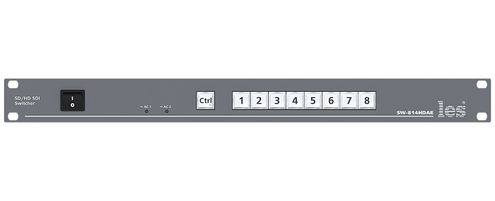 SW-814HDAE - предназначен для коммутации цифровых последовательных сигналов 3G/HD/SD-SDI и DVB-ASI с 8 входов. Коммутатор может работать в трёх режимах:
