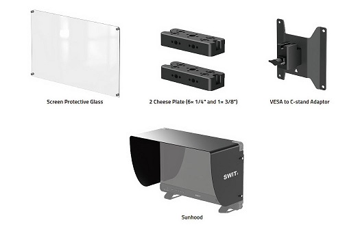 Монитор K21 поставляется в стандартной комплектации с 2-мя сырными досками для размещения таких аксессуаров, как беспроводные видеоприемники. Сырные доски могут быть съемно установлены в 5 различных положениях сзади и по бокам. Кроме того, K21 также оснащен адаптером VESA для подключения к C-stand, что делает его невероятно удобным для съемочных групп при установке на осветительную стойку C-stand для мониторинга в различных условиях съемки.