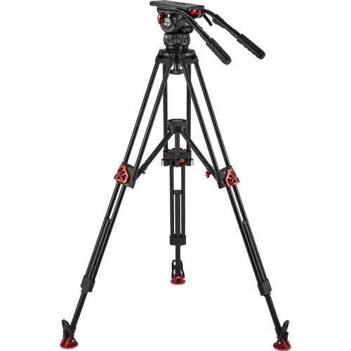 Алюминиевый трипод оснащён стандартным полусферическим креплением 100 мм и распором среднего уровня, обеспечивающим устойчивость конструкции. Ноги фиксируются рычажными замками, могут выдвигаться по высоте от 62 до 167 см и складываются до 91 см для транспортировки.