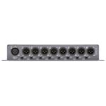Из сигнала Dante выделяется всегда только 1-й канал. Усилитель-распределитель виден в сети Dante под идентификатором Audiocom XXXX-YYYY. Регулировать уровни входных сигналов можно с лицевой панели устройства или из окна программы управления. ПК подключается к усилителю через USB. Регулировки уровней из окна программы управления и с лицевой панели равнозначны, действует последняя использовавшаяся.