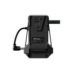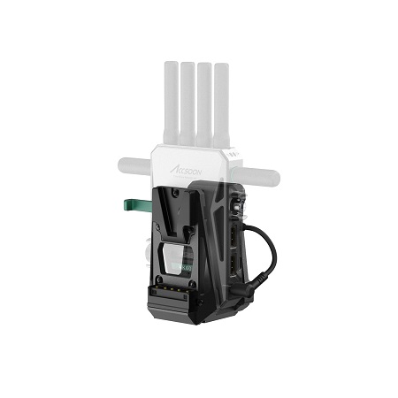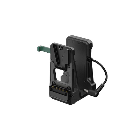 Адаптер крепится через стандартную V-Lock площадку и подключается к передатчику коротким фиксированным DC-кабелем. Питание от батареи одновременно подаётся как на камеру, так и на видеосендер. Такое решение особенно удобно для ENG-камер, зеркальных и беззеркальных камер с V-Lock креплением.