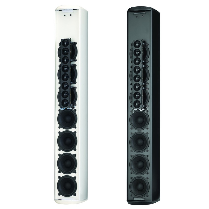 Во вторых, акустические колонны имеют широкую диаграму направленности в горизонтальной плоскости, что позволяет равномерно озвучивать помещения большого объёма меньшим количеством колонок.