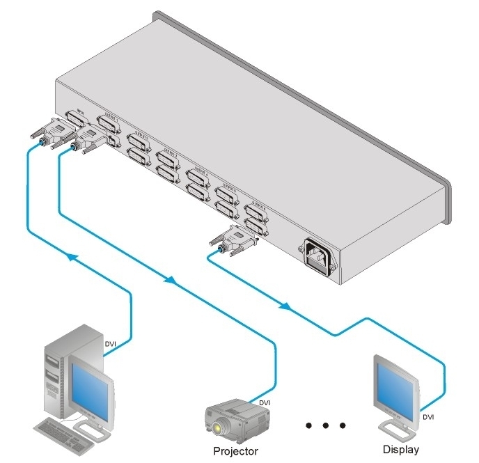 | Опции: | Кабели DVI/DVI с вилками на концах, волоконно-оптический кабель DVI |