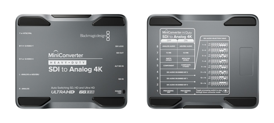 Преобразование SDI в аналоговый сигнал для форматов SD, HD и Ultra HD, понижающая конверсия и встроенный звук. Все модели Mini Converter Heavy Duty изготовлены из цельного алюминия и способны выдерживать самые суровые условия эксплуатации. Это идеальное решение для работы в передвижных телевизионных станциях.