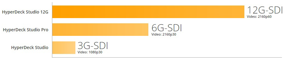 Модель HyperDeck Studio 12G оснащена интерфейсом 12G-SDI, который позволяет работать с изображением в форматах Ultra HD с частотой до 60 fps. На протяжении многих лет вещательные компании использовали форматы 720p и 1080p HD для освещения спортивных событий. Благодаря интерфейсу 12G-SDI дека HyperDeck Studio 4K способна вести запись с высокой кадровой частотой в Ultra HD, при этом для передачи высококачественного изображения достаточно одного BNC-кабеля по стандарту SDI. Интерфейс 12G-SDI является многоскоростным и дает возможность подключать любое имеющееся SD-, HD-SDI, 3G-SDI и 6G-SDI-оборудование. Мгновенно переходя на нужный формат, HyperDeck Studio 12G будет записывать входящий SDI-сигнал и воспроизводить файлы с SSD-диска. Только 12G-SDI обеспечивает совместимость с любой техникой!