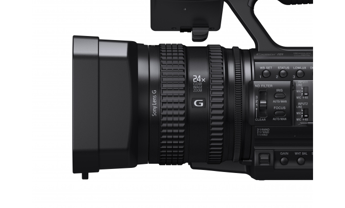Специально для камкордера NX100 инженерами Sony был разработан широкоугольный объектив «G Lens» с фокусным расстоянием 29 мм, который позволяет запечатлевать масштабные сцены с высокой детализацией. 12-кратное оптическое масштабирование было в значительной степени усовершенствовано благодаря применению технологии By Pixel Super Resolution от Sony, которая позволяет увеличивать область изображения дополнительно в 24 раза, сохраняя качество изображения неизменным. Диапазон масштабирования также можно удвоить с помощью цифрового экстендера, который увеличивает коэффициент масштабирования до 48x.