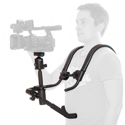 Плечевой Упор на два плечаc шаровой конструкцией головки для широкого спектра Видео- и DSLR- камер. Регулируемая высота установки камер. Легкий, компактный, складываемый, удобная сумка для перевозки