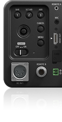 Эта компактная и легкая видеокамера ME200S-SH отличается широкими возможностями подключения: ее можно подключить к монитору, внешнему устройству записи, пульту дистанционного управления. Также имеется выход HDMI, разъём для синхронизации видеосигнала GENLOCK и два разъема 3G/HD-SDI. Удаленное управление обеспечивается возможностью подключения пульта дистанционного управления Canon RC-V100*, используя два разъема: 2,5 мм и RS-422.