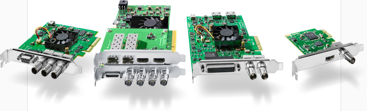 DeckLink — идеальное решение для любого проекта. DeckLink 8K Pro и DeckLink 4K Extreme 12G с интерфейсом 12G‑SDI обеспечивают высокую скорость передачи данных и позволяют выполнять обработку видео в Ultra HD и 8K. Кроме того, в линейке есть модели с поддержкой 1.5G‑, 3G‑, 6G‑ и 12G‑SDI, которые оснащаются разной комбинацией аналоговых, SDI‑ и HDMI‑разъемов. Для одновременного захвата и вывода из нескольких источников можно использовать специальные многоканальные платы. Благодаря тому, что звук встроен в SDI‑поток, каждая модификация совместима с деками, мониторами, проекторами и другим профессиональным оборудованием вещательного класса.