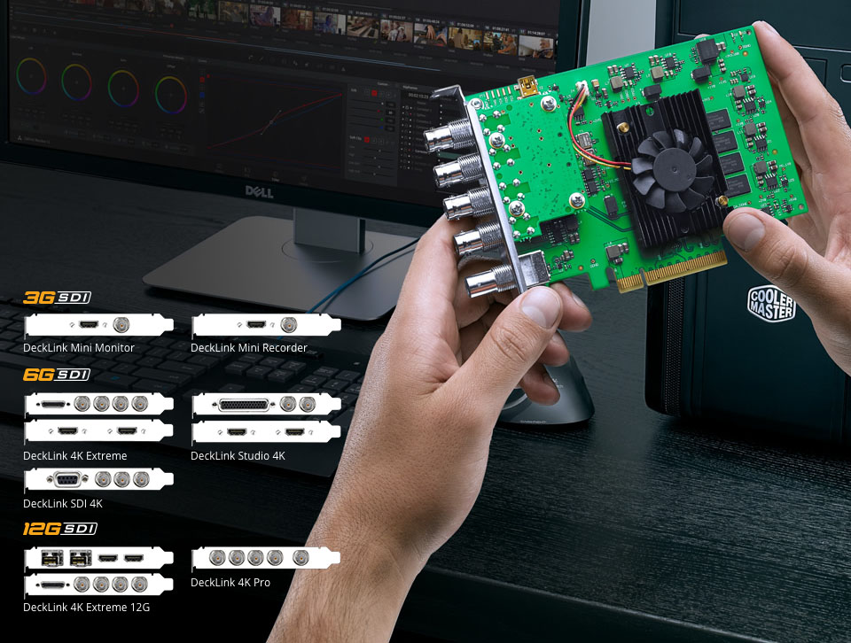 С помощью DeckLink изображение с камеры или деки можно передавать непосредственно в приложения класса DaVinci Resolve для последующего монтажа и наложения эффектов. В зависимости от модели предусмотрена поддержка всех основных форматов, используемых в кино, на телевидении и студиях постпроизводства. Платы обеспечивают обработку 12‑битного видео 4:4:4, материала с кадровой частотой до 60 fps, а также проектов в 3D и с широким динамическим диапазоном. Все это делает линейку DeckLink идеальным решением для вывода сигнала на профессиональные SDI‑мониторы, HDMI‑телевизоры или экраны цифровых проекторов.