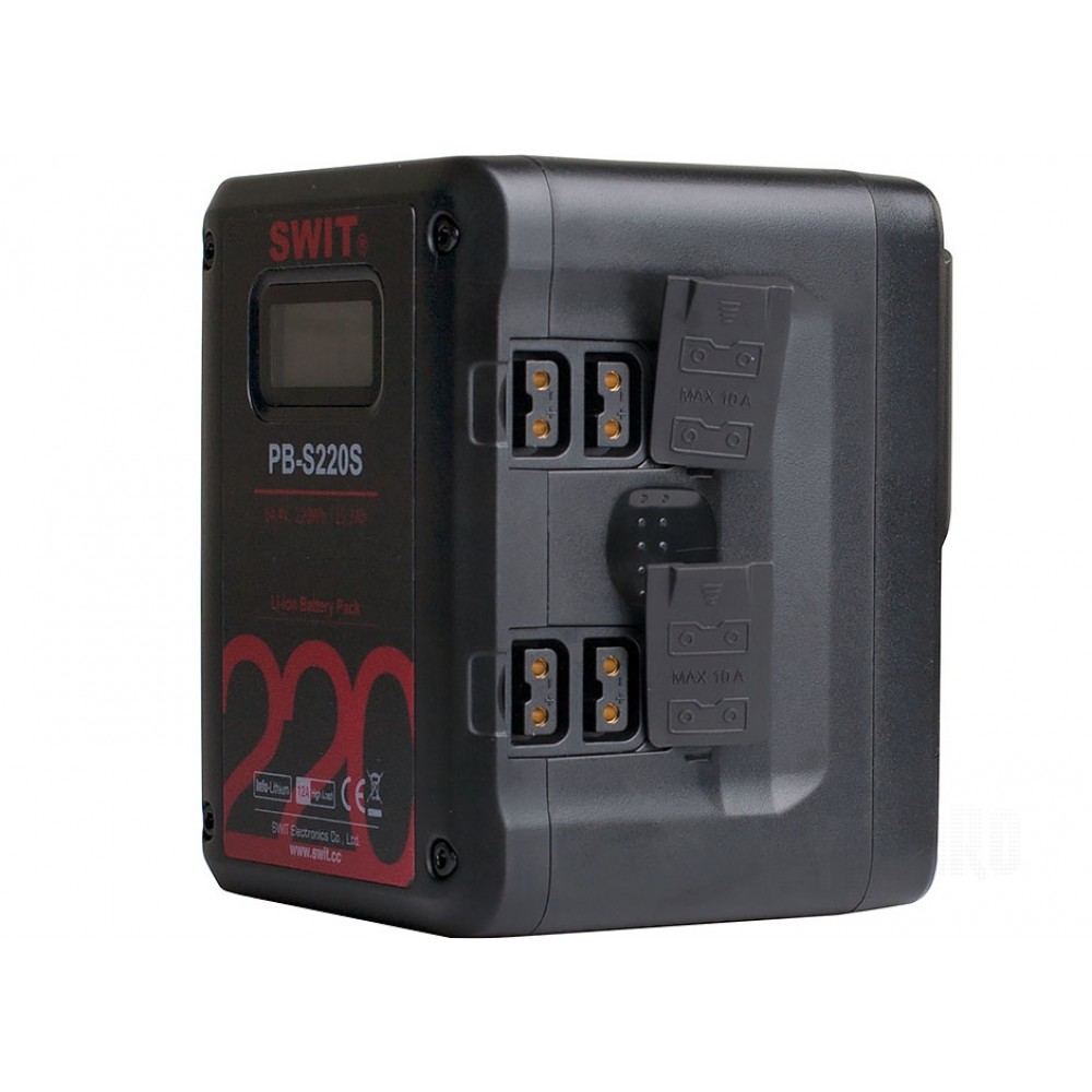 PB-S220S аккумуляторная батарея ёмкостью 220Вт.ч с креплением V-lock для кино и ENG камер, с последней конструктивной разработкой корпуса. Батарея поддерживает большой ток нагрузки, быстрый заряд и имеет LCD индикатор состояния элементов.
